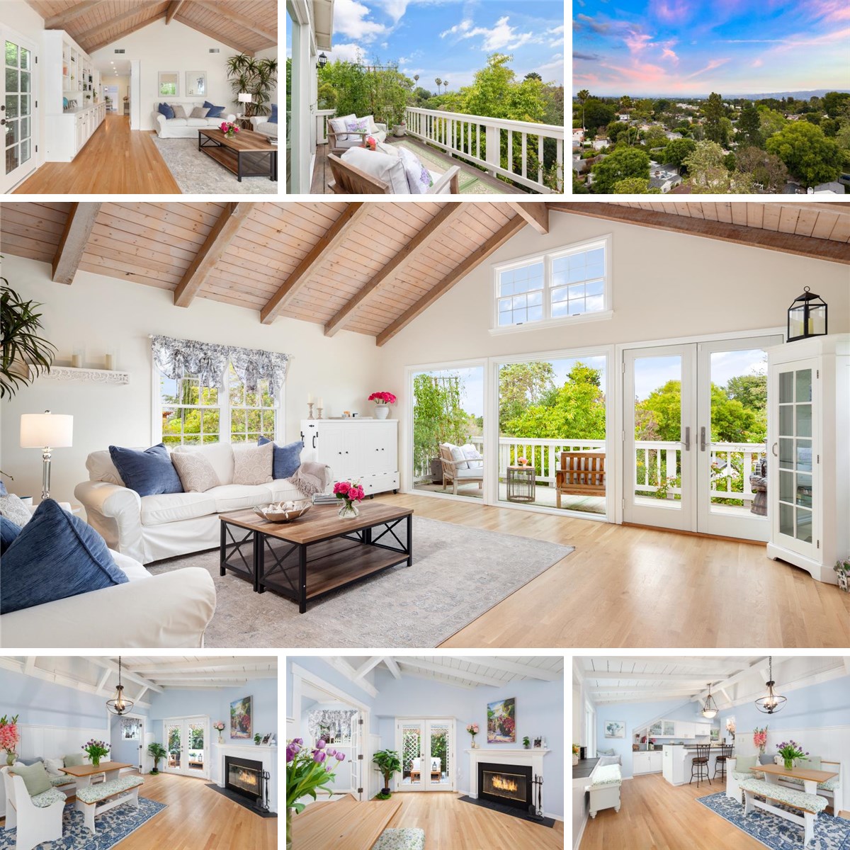 Located in the highly desirable "Silver Triangle" neighborhood of Studio City, this warm and inviting New England shabby chic home offers both stunning panoramic views and privacy. New gleaming wood floors throughout, high wood beamed ceilings, walls of floor to ceiling windows and French doors add much to the character rich charm. The dining room has a fireplace and French doors that lead to a cozy private patio. The expansive light-filled Great room built for gracious entertaining, has hi wood beamed ceilings and walls of windows that capture the views. The cook's kitchen has granite counters and it opens to the family room and dining room. All three beautiful bedrooms are ensuite. The entire lower level boasts the spacious primary suite with its walk-in cedar closet, dual vanity and soaking tub. The suite opens up to a large private secluded deck from which one can enjoy the gorgeous view and fragrant rose garden. A delightful storybook playhouse adds to the charm. This ideal Studio City location is just moments from Ventura Blvd and its fine dining and shops, Farmer's Market, Carpenter School, Fryman Canyon and nearby hiking trails. This is a very special home in a very special neighborhood!